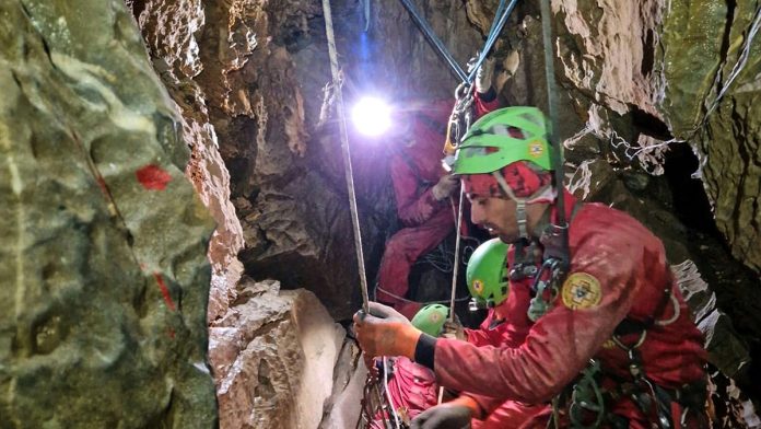 The Abisso Paperino cave extends nearly 600 feet underground. (National Alpine and Speleological Rescue Corps via AP)