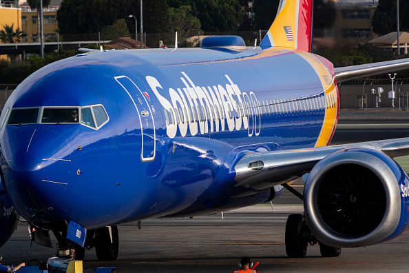A Southwest Airlines Boeing 737 MAX is pushed back from the gate at San Diego International Airport in San Diego, Aug. 24, 2024.